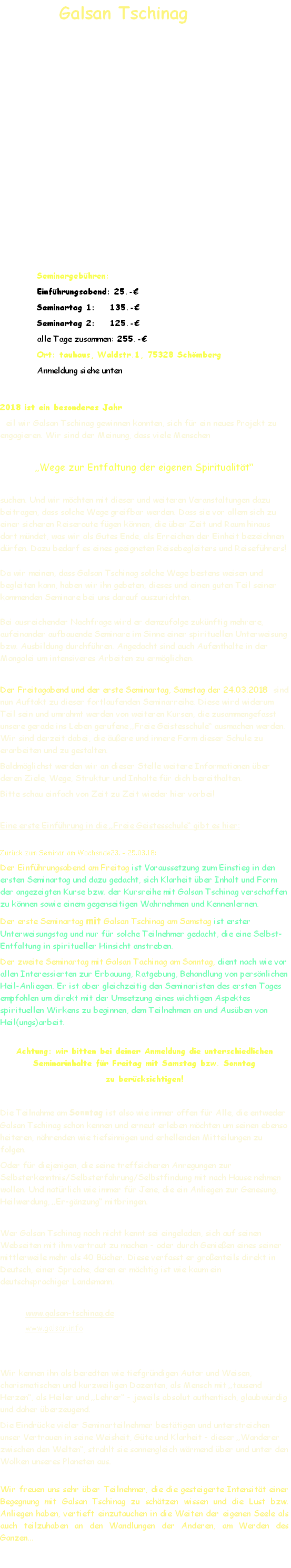 Deine Anmeldung zum Seminar erbitten wir schriftlich an folgende Adresse: